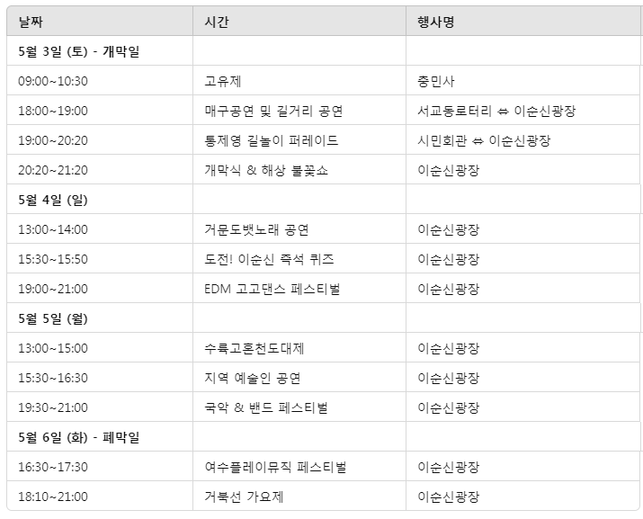 📅 2025 여수 거북선축제 일정